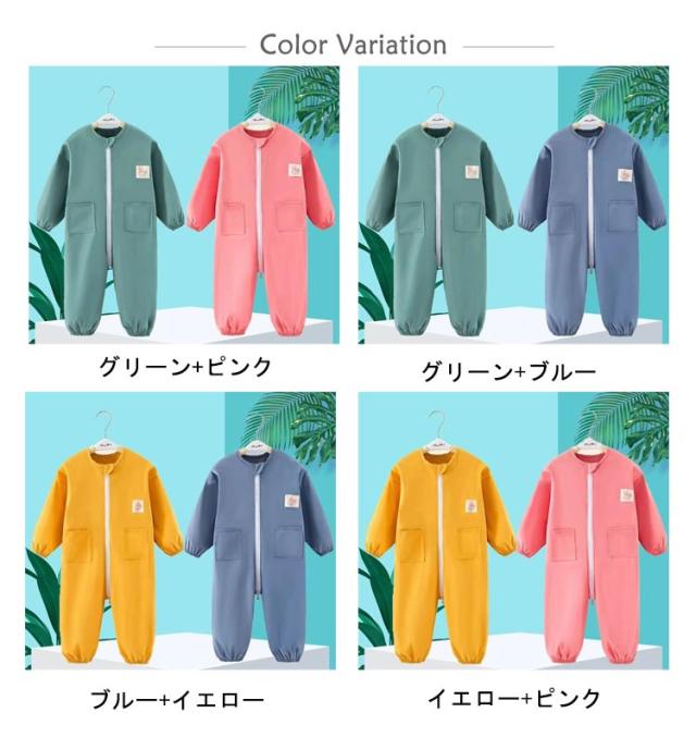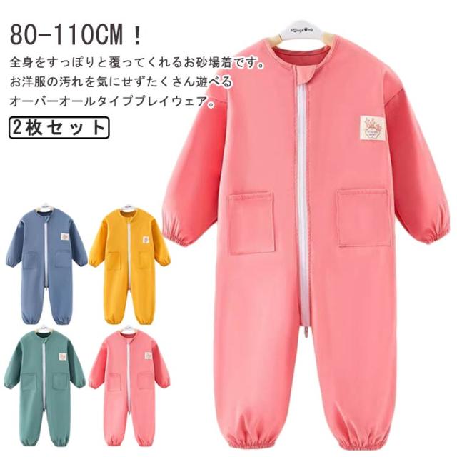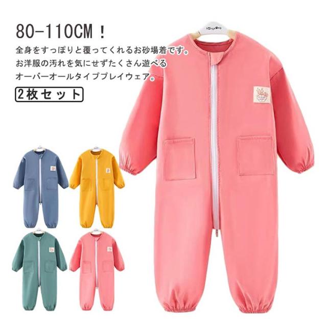 遊び着 お砂場着 プルオーバー 送料無料 子供 プレイウェア キッズ つなぎ 長袖 オーバーオール 男の子 2枚セット ロンパース 撥水加工 スモック 女の子 子ども ベビー ジャンプスーツ ダブルファスナー付き 水遊び 汚れ防止 送料無料 小学生 幼稚園