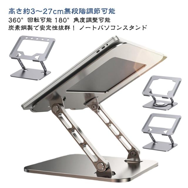 ノート 【360°回転可能】 【360°回転可能】 折りたたみ 式 PCスタンド パソコンスタンド 軽量 パソコン台 炭素鋼 改良版 ホルダー ノートパソコンスタンド 無段階調節 角度調整可能 滑り止め 高さ 姿勢改善 Macbook/Macbook Air
