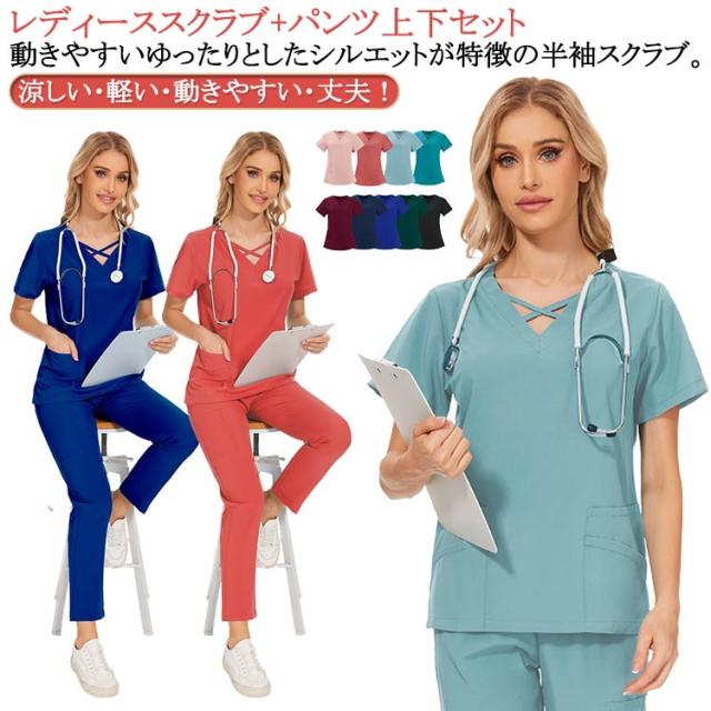 上下セット おしゃれ メンズ 女性用 レディース 医師 医療 ズボン 制服 ナース 介護施設 半袖 サロン 女性 白衣 スクラブセット 看護師 スクラブ 介護士 介護服 体型カバー パンツ 大きいサイズ 歯医者 医務衣 女性用 ナース服 大きいサイズ 介護施設