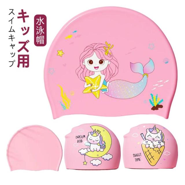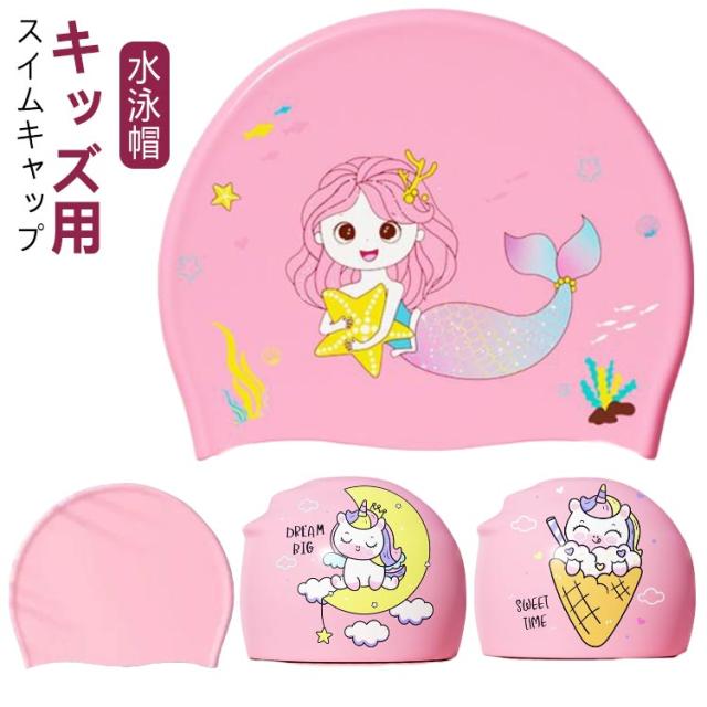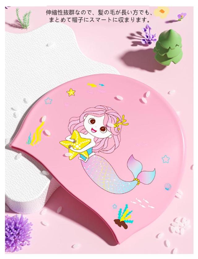 人魚姫 キッズ 水泳帽 ジュニア 3-15歳 スイムキャップ ユニコーン スイムキャップ 海水浴 女の子 スイミングキャップ レジャー スクール 水遊び プール 夏 子供用 水泳 水泳帽子 プールキャップ UV対策 帽子 シリコン