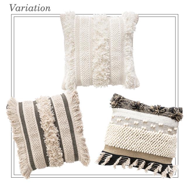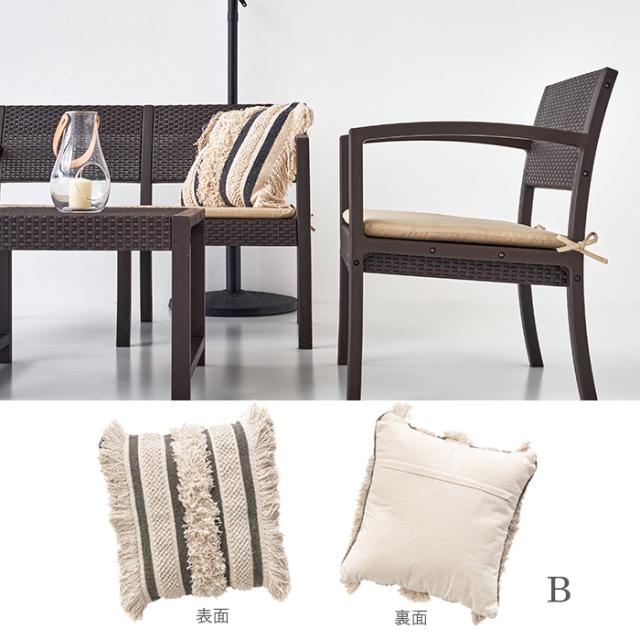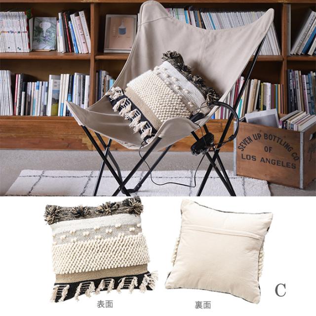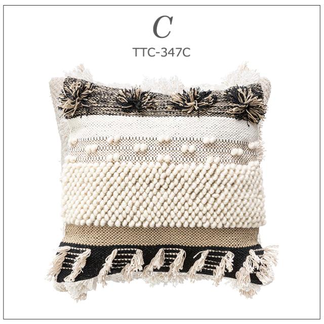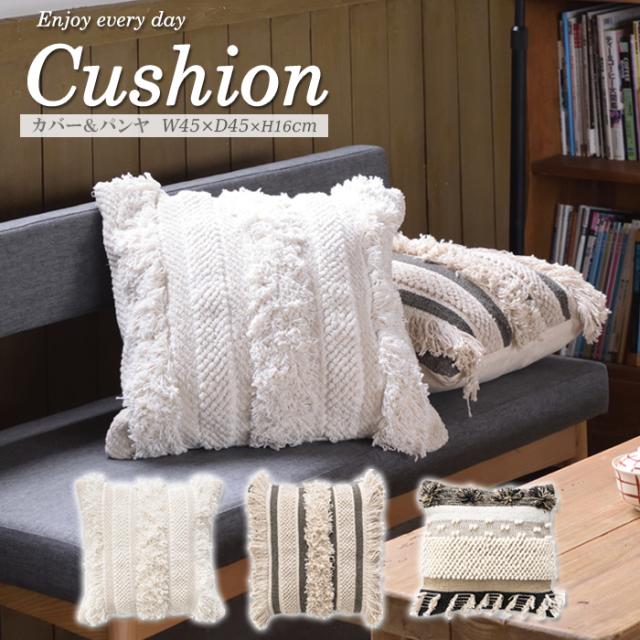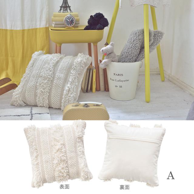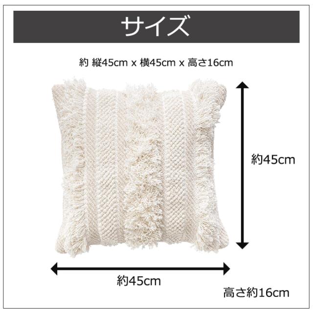 クッション おしゃれ 45cm クッション 大人可愛い クッション 北欧 フリンジ付 手編み風 TTC-347 (AZ) もこもこ ふわふわ モダン ナチュラル 西海岸 リゾート かわいい ギフト プレゼント キャンプ アウトドア クッション 背もたれ コットン