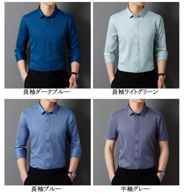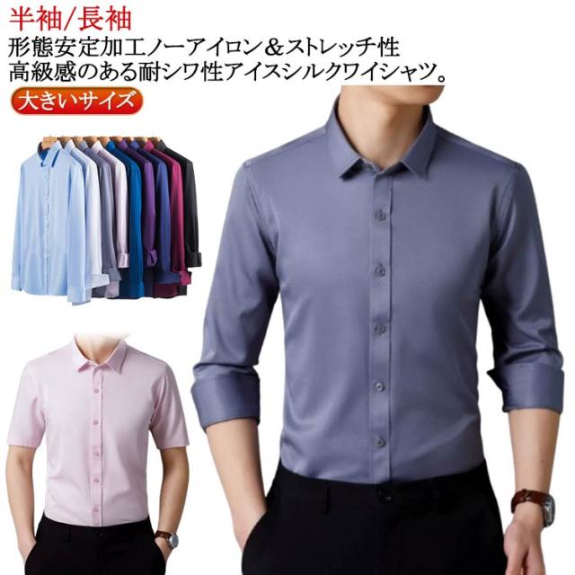 | 半袖/長袖 形態安定加工ノーアイロン&ストレッチ性 高級感のある耐シワ性アイスシルクワイシャツ。 快適な優良品質の生地、汗を吸ってすぐ乾く、吸水速乾性、通気性に優れている。 使い勝手も良く合わせ易い仕様、 形のキレイなジャストに着こなせるサイズ感など拘りが感じられるディティールに仕上がっております。 定番のデザイン、休日のカジュアルスタイルや、ビジネスにもハマる万能シャツ。 | |