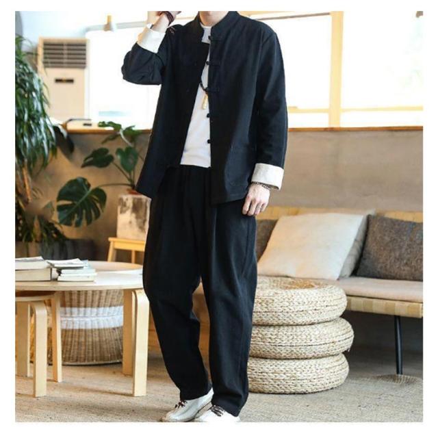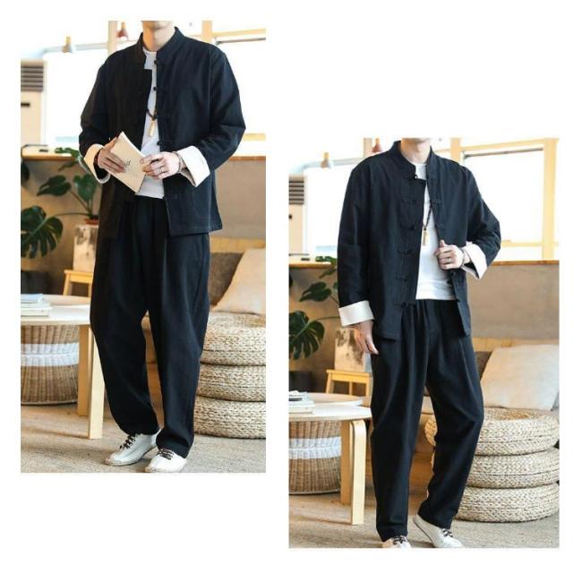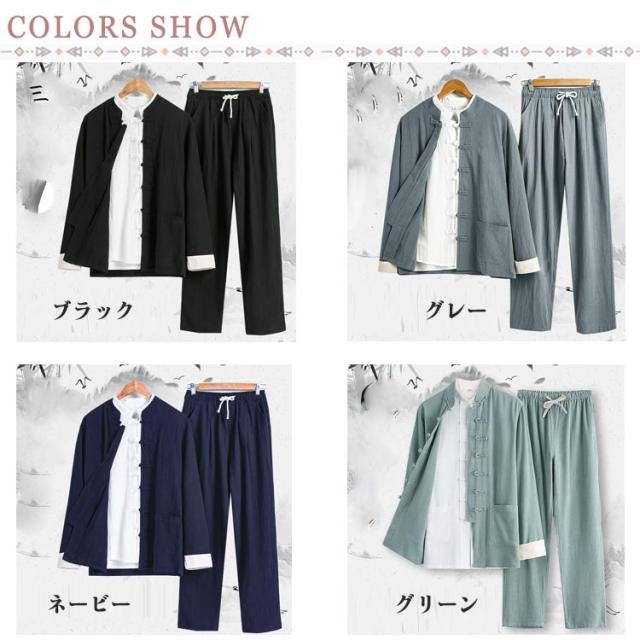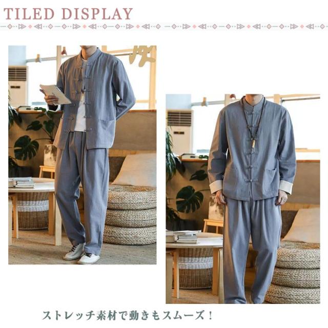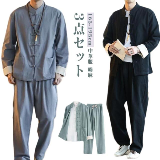 | 3点セット 165-195cm 中華服 綿麻 やわらかな肌ざわりとしなやかなドレープ! 洗濯機で洗えてお手入れカンタン! ストレッチ素材で動きもスムーズ! | |
