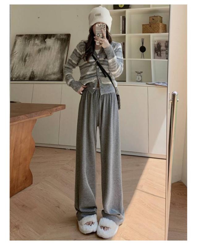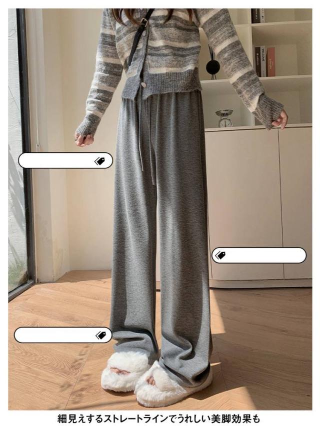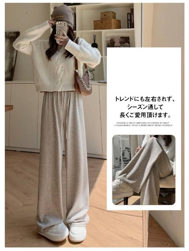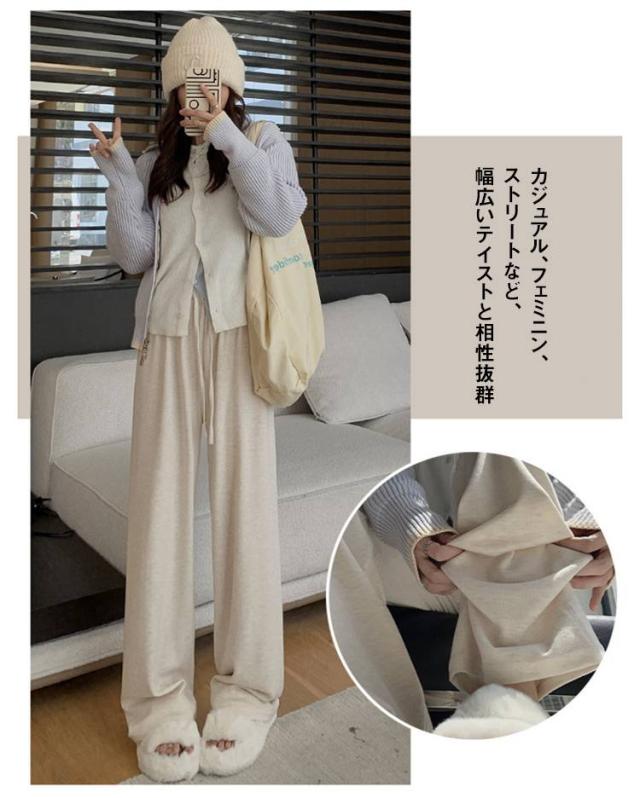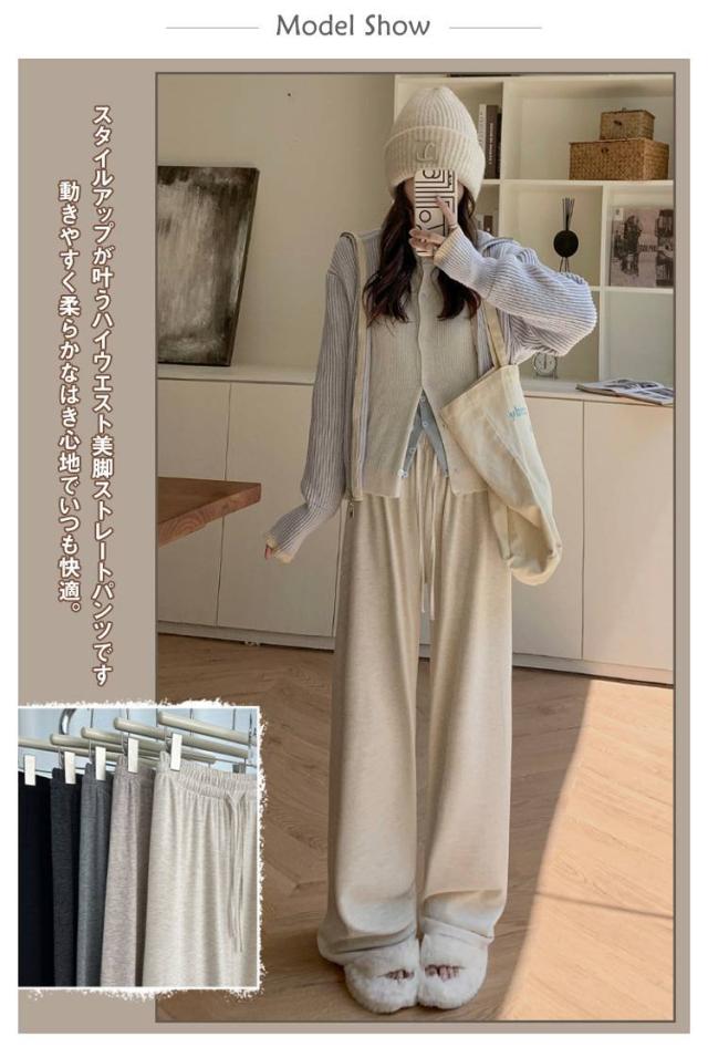 パンツ レディース カジュアルパンツ スウェットパンツ ロング丈 長ズボン 2厚さ 女性 ワイドパンツ ゆったり ボトムス ハイウエストパンツ ズボン 夏 スタイルアップ ウエストゴム ストレート きれいめ リラックスパンツ 春 秋 冬