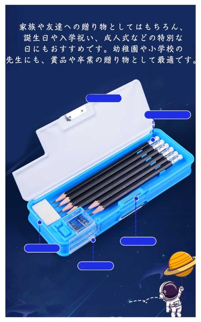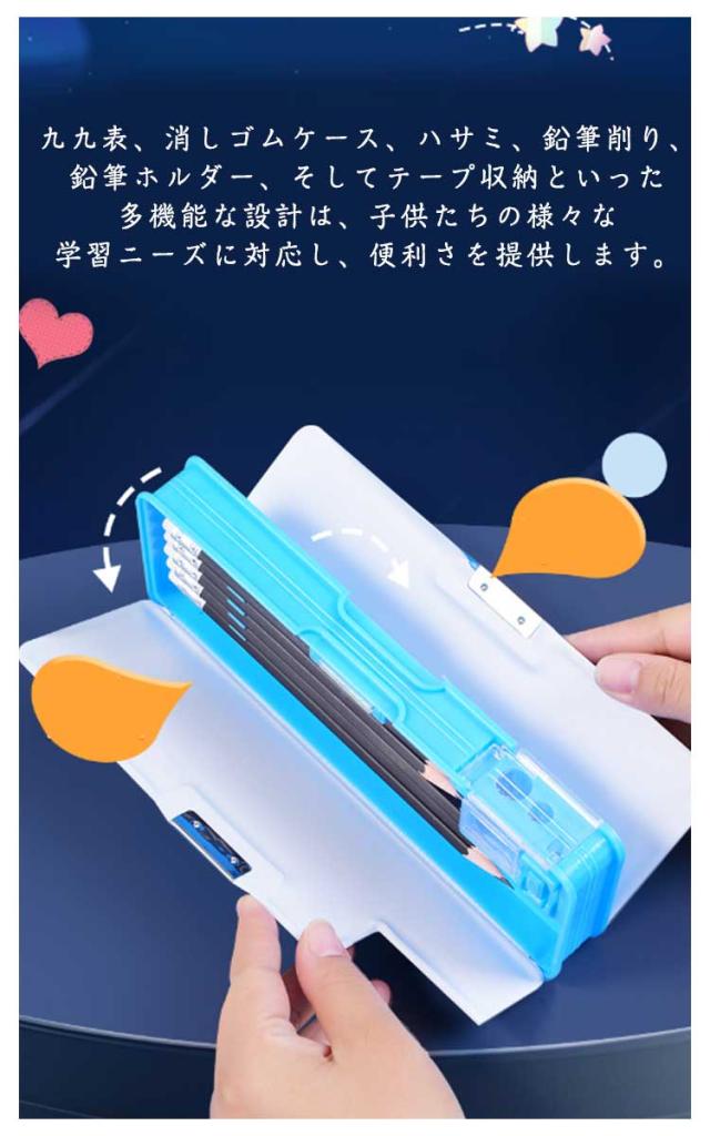 | 筆箱の表面は、お子様向けに特別にデザインされたカートゥーン柄で、漫画のデザインは子供たちに大変人気があります。お子様へのプレゼントに最適です。 九九表、消しゴムケース、ハサミ、鉛筆削り、鉛筆ホルダー、そしてテープ収納といった多機能な設計は、子供たちの様々な学習ニーズに対応し、便利さを提供します。 ABS材料を使用し、耐久性と環境への配慮を大切にしています。安全性にも優れ、お子様の健康を守ります。 家族や友達への贈り物としてはもちろん、誕生日や入学祝い、成人式などの特別な日にもおすすめです。幼稚園や小学校の先生にも、賞品や卒業の贈り物として最適です。 | |