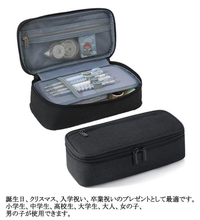 女の子 仕切り シンプル 2層 シンプル 多機能 大容量 おしゃれ 社会人用 収納ポーチ ファスナー 筆箱横開き ペンケース ジッパー ガジェットポーチ ペンホルダー付き 旅行 出張 強力な分類と収納力 男の子 大人 小学生 高校生