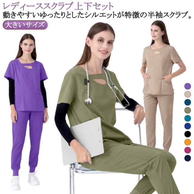 医療 介護服 ナース服 白衣 上下セット ユニフォーム スクラブセット レディース 医師 女性用 半袖 女性 大きいサイズ スクラブ 制服 スクラブ おしゃれ パンツ スクラブ 上下 セット 上下セット 医療用 大きいサイズ ストレッチ 女性用