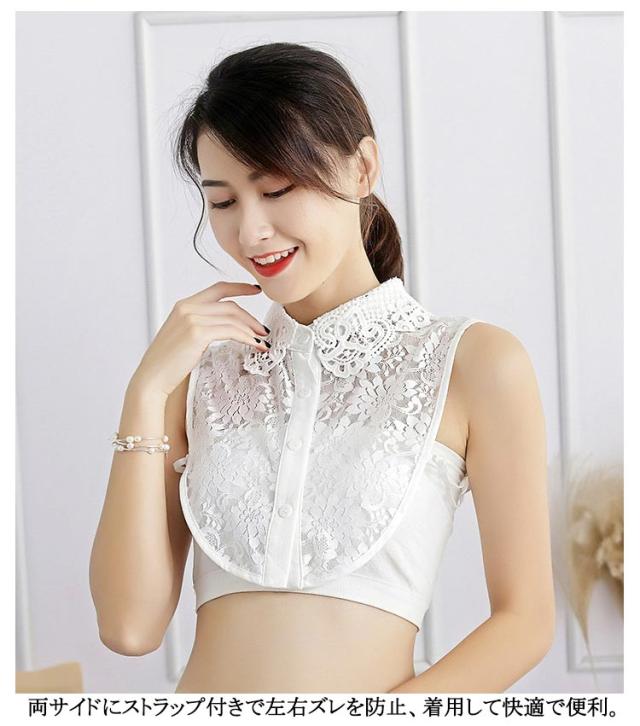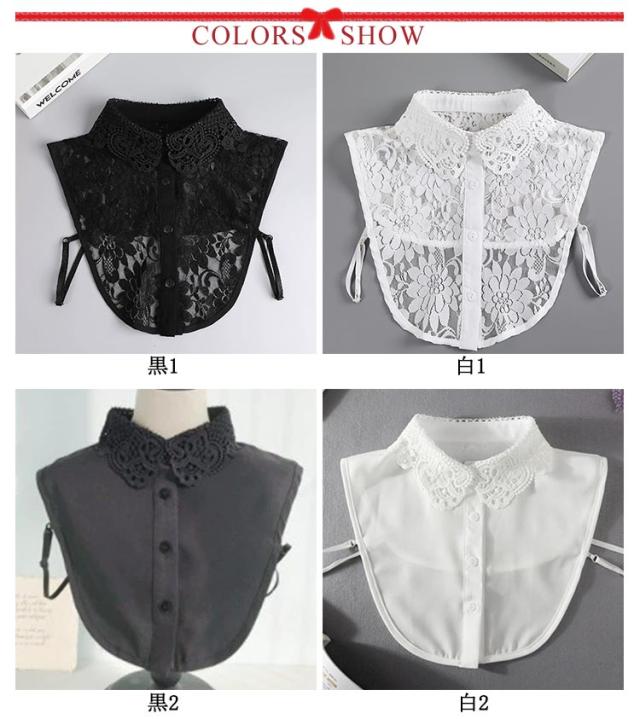 | 綺麗なレース生地で大人らしい印象を与えます レース生地な、柔らかく通気性が良い。付け襟なので、重ね着してもゴワゴワしません。 両サイドにストラップ付きで左右ズレを防止、着用して快適で便利。 これ1つ付けるだけで首元がぐんっと華やかになります。 レースの襟がエレガントで素敵。ドレス、セーター、Tシャツなど、襟のないさまざまな服装に合わせることができる。 | |