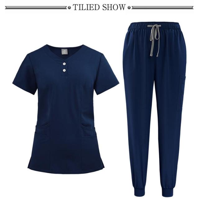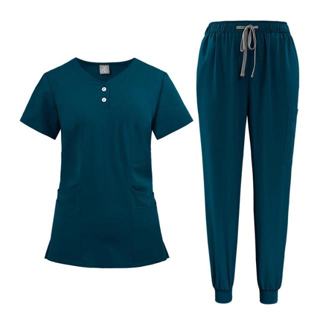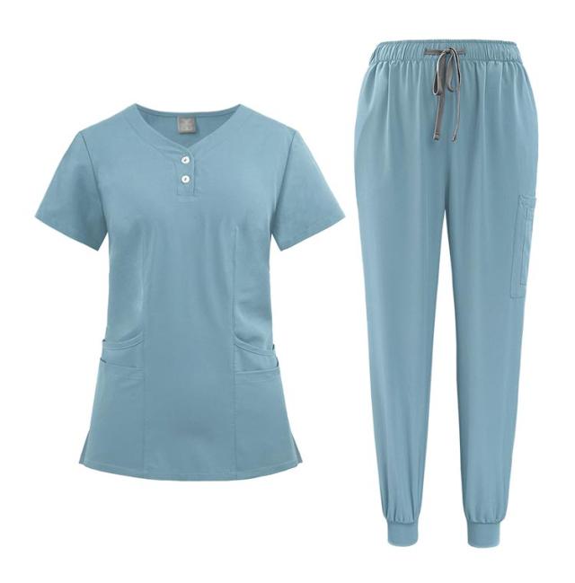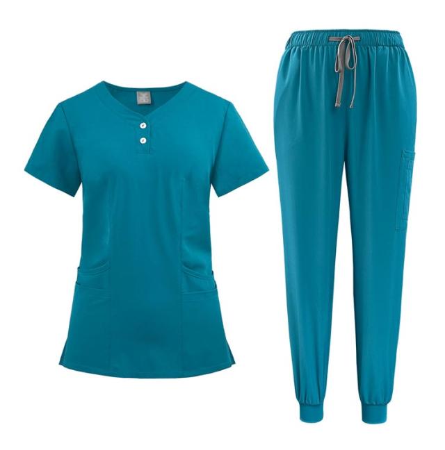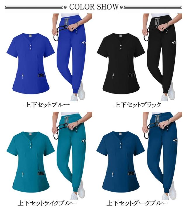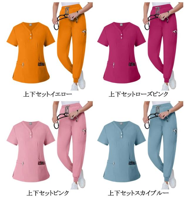 多ポケット お得なスクラブ上下セット!白衣 吸汗速乾 上下セット 多機能ポケット 男女兼用スクラブ白衣 スクラブ上衣ジョガーパンツ 医者 10色 医者 ナース 看護師 セットアップ 手術衣 医療用 病院 ドクター 介護 整体