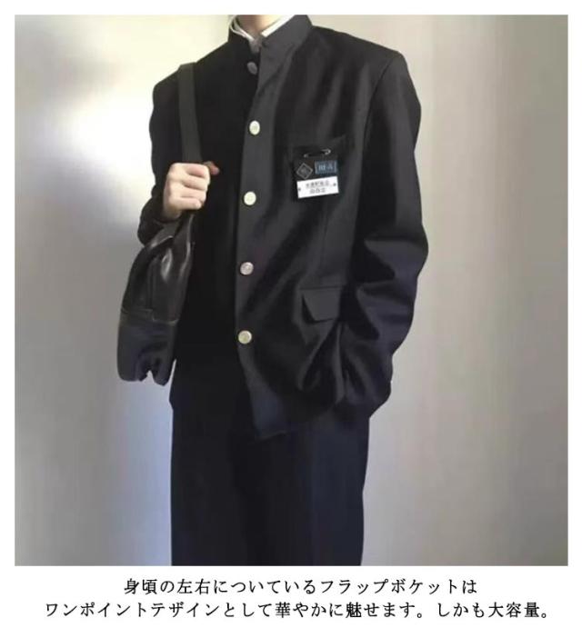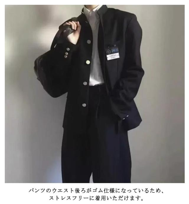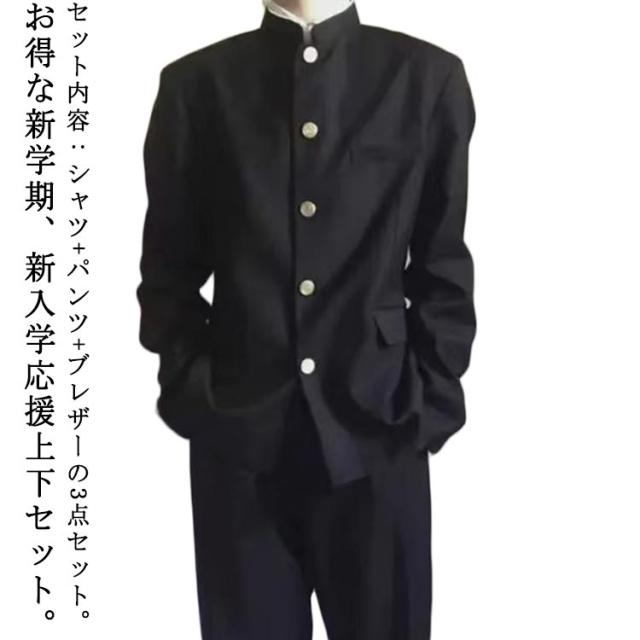 メンズ 男子 制服 中学生 ズボン 学ラン ラウンド襟 ブレザー ジュニア 詰襟 長袖シャツ 上下セット 3点セット 通学 ボーイズ スクール ジャケット スラックス 学生服 高校生 学生服 ウエストゴム 学生服 丸洗い 入学式 卒業式 コスプレ衣装 仮装 黒