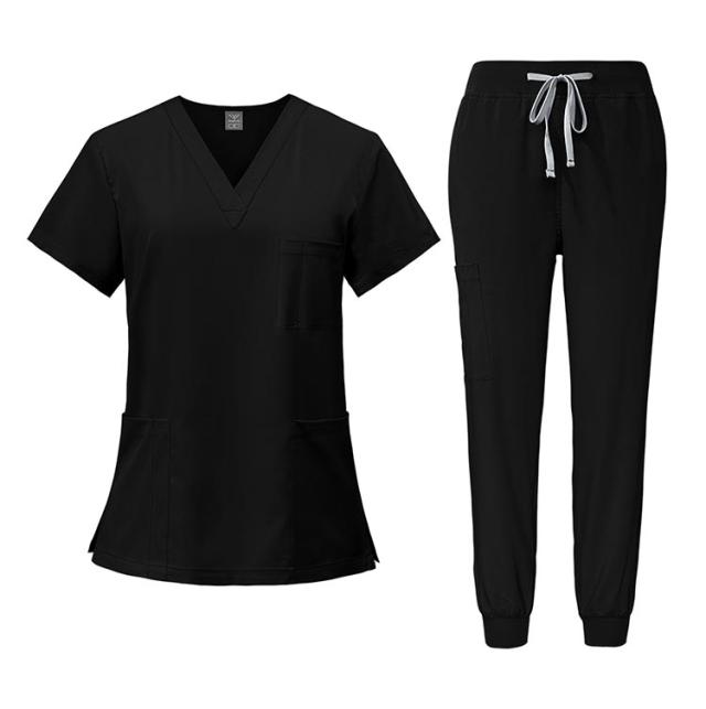 | スクラブとジョガーパンツ上下セット。 高級感があり、清潔な印象を与えます。 軽くて涼しい薄手の生地で、夏場の使用にピッタリです。 トレンドのジョガーパンツは、裾を踏む心配がなく、医療や介護、動物病院など幅広く対応。 | |