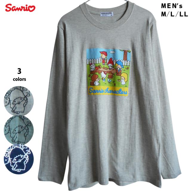 送料無料 ロンT キティちゃん マイメロディ サンリオ 歴代 人気キャラクター 長袖Tシャツ メンズ M L LL 刺繍 キキララ パティ&ジミー バニー&マッティ レトロ ピクニック エモい レディース 大きいサイズ かわいい グレー 緑 ネイビー くすみカラー