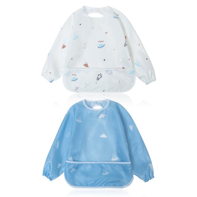 Little Dimsum 長袖エプロン お食事ベビーエプロン 長袖 食事用 防水エプロン 立体ポケット 軽量 速乾 子供用 ポケット付き 保育園用