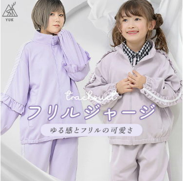 ジャージ 上下 キッズ ジュニア 女の子 100cm 110cm 120cm 130cm 140cm フリル付き ユック YUK ブランド 春夏秋冬 子供服 セットアップ スポーツ カジュアル フリル 1本ライン ダンス ウェア 小学校 中学校 かわいい おしゃれ 女児 女子 ガールズ ガーリー 送料無料