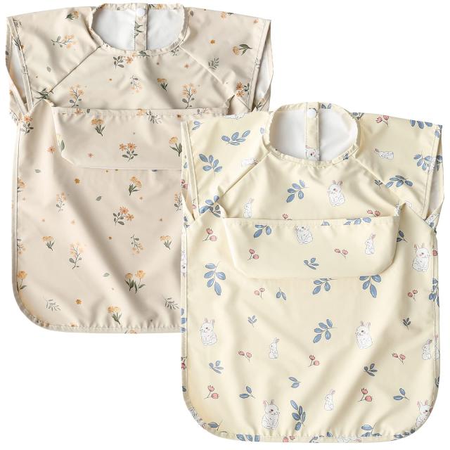 GoUseGo お食事エプロン ベビー 離乳食エプロン 2枚セット 袖なし 食事用エプロン ノース リーブ 防水 お食事スタイ 洗える 幼児 赤ちゃ