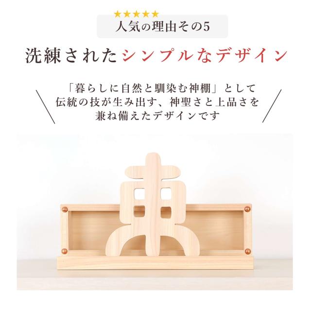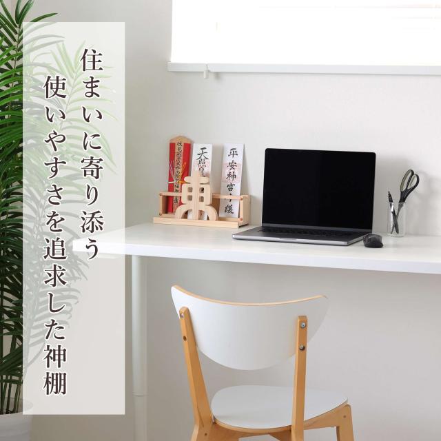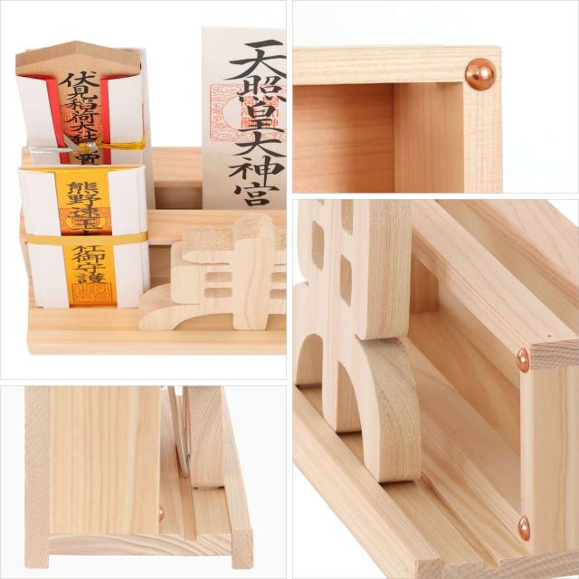本体はお札を立てる溝が2列あり、5〜6枚のお神札を収納します。またお守りや縁起小物も一緒に添えて、神様の近くに。