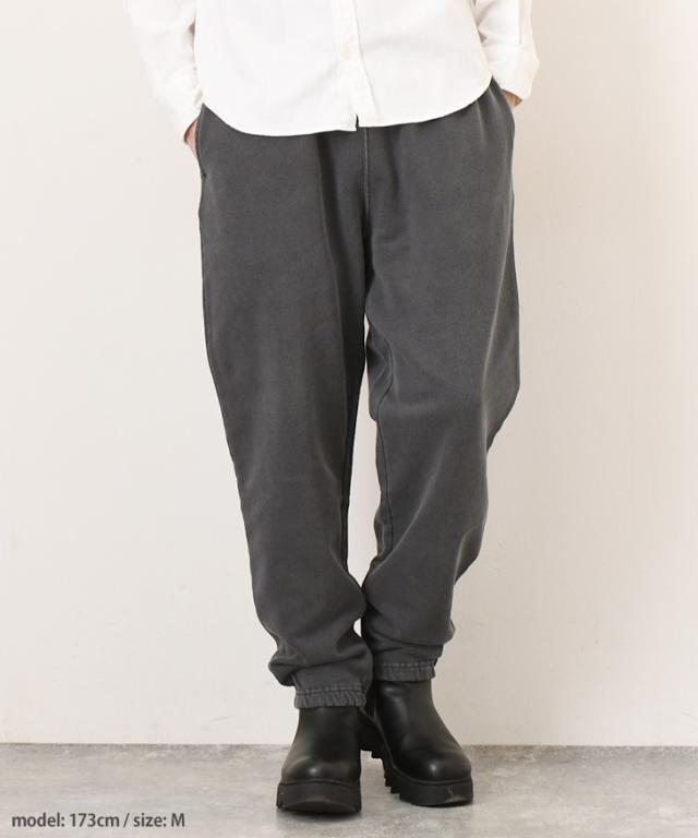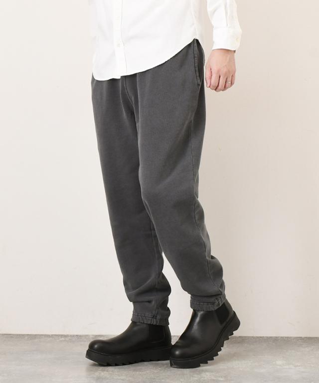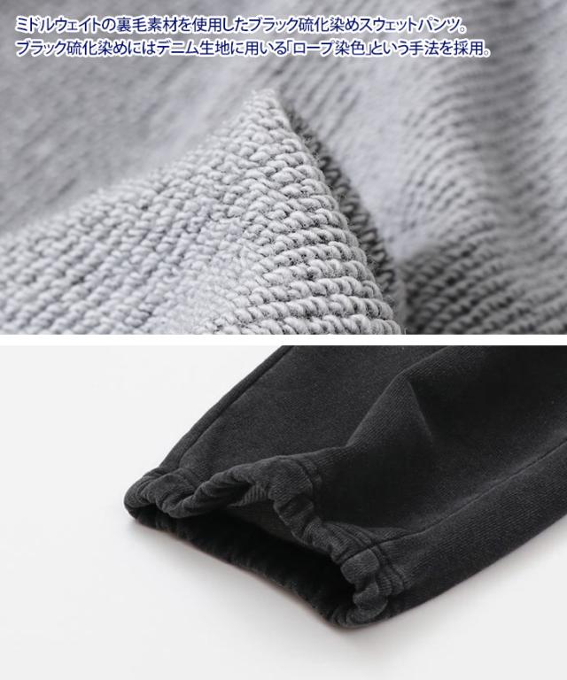 ミドルウェイトの裏毛素材を使用したブラック硫化染めスウェットパンツ。