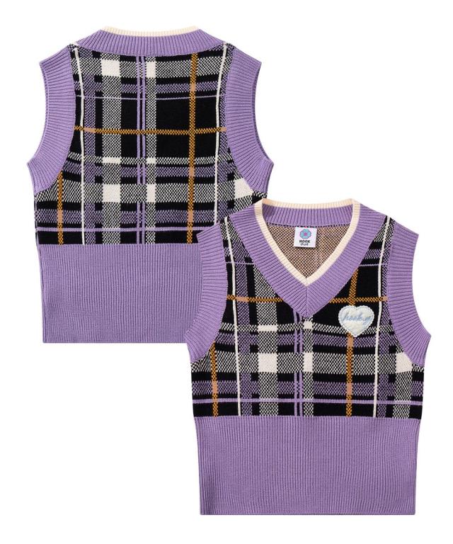 フック(HOOK)/【HOOK】for girls ハートワッペンチェック柄ニットベスト