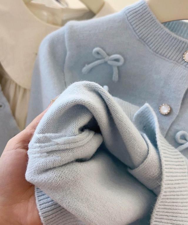 小さなリボンがアクセントになったキュートなカーディガン。可愛らしさと上品さを兼ね備えており、シンプルながらも華やかな印象を与えます。きゅっと絞られた袖口はフリルが施され、ガーリーな雰囲気を引き立てます。カジュアルにパンツスタイル、可愛らしくスカートに合わせても、ワンピースに羽織っても◎デイリーユースはもちろん、フォーマルシーンでも活躍するアイテムです♪