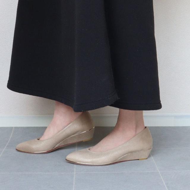 エイチエス(HS)/日本製 HS ウェッジソール サテン パンプス