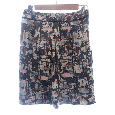 【中古】コムサイズム COMME CA ISM タイトスカート プリーツ ワンボックス ひざ丈 総柄 M ベージュ /AU レディース