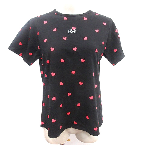 【中古】レディ Rady カットソー Tシャツ ラウンドネック ロゴ 刺繍 プリント ハート柄 半袖 F 黒 ブラック /AU