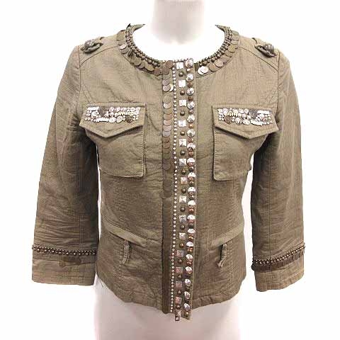 【中古】ロイヤルパーティー ROYAL PARTY ミリタリージャケット ブルゾン ジップアップ 総裏地 スタッズ 38 M 緑 カーキ /YK レディース