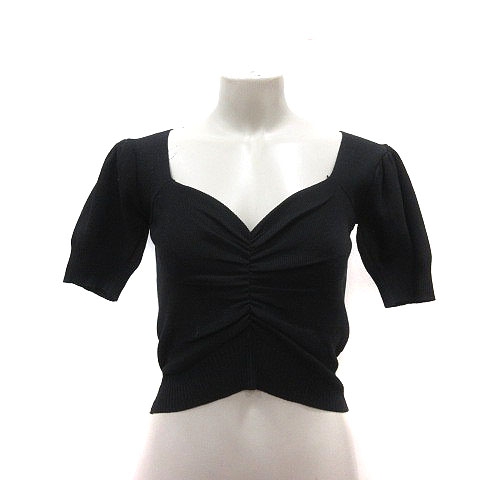 【中古】ディーホリック DHOLIC ニット カットソー ショート丈 五分袖 黒 ブラック /MS レディース