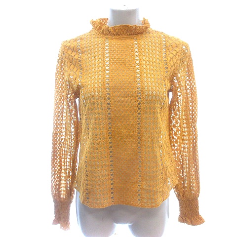 【中古】レイビームス Ray Beams シャツ ブラウス フリルスタンドカラー 総レース キャンディスリーブ 長袖 0 S 黄色