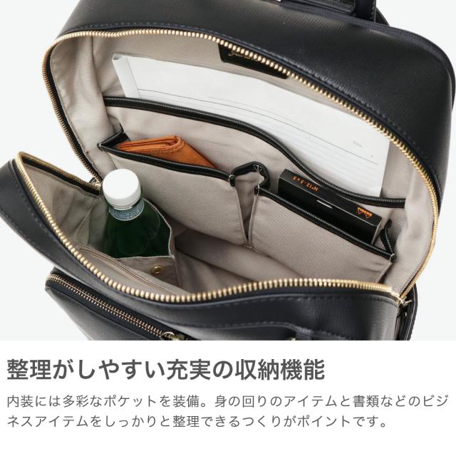 『Jewelna Rose/ジュエルナローズ』から、大人気シリーズ「フレイヤ2」のアップデート版が登場。こちらは、17L容量のゆったりサイズリュックです。コーディネートを選ばないシンプルでベーシックなデザインで、ビジネスシーンでの活躍はもちろん、デイリーにも馴染む機能的アイテムとなっています。