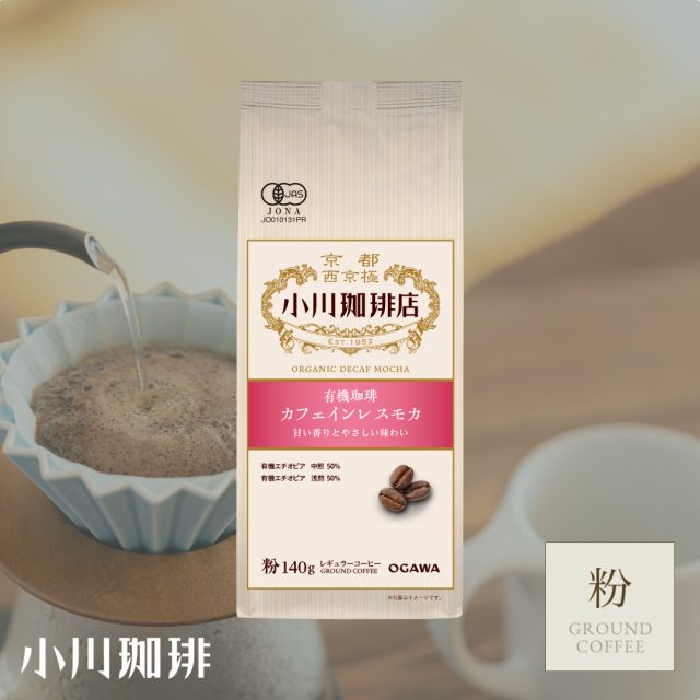 有機珈琲 カフェインレス モカ(粉)140g | 公式小川珈琲 有機栽培 オーガニック レギュラーコーヒー デカフェ粉