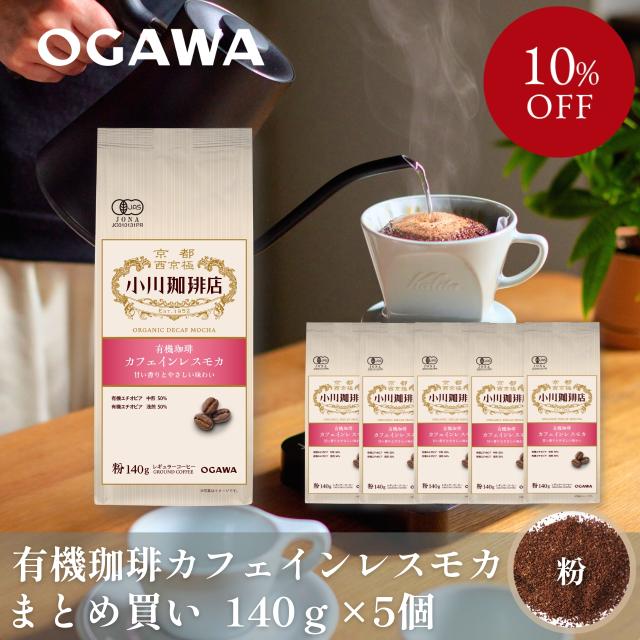 【まとめ買いでお得!】小川珈琲 有機珈琲 カフェインレス モカ(粉)140g ×5個 | SDGs エシカル 有機栽培 オーガニック 有機JAS認証 レギュラーコーヒー デカフェ カフェインレス 水抽出法 | 公式 京都 小川珈琲 送料無料