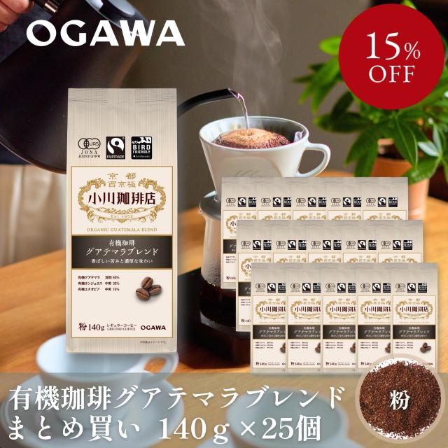 【まとめ買いでお得!】小川珈琲 有機珈琲 グアテマラブレンド(粉)140g ×25個 | SDGs エシカル 有機栽培 オーガニック 有機JAS認証 バードフレンドリー フェアトレード レギュラーコーヒー 粉 | 公式 京都 小川珈琲 送料無料