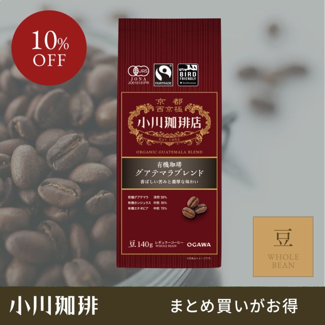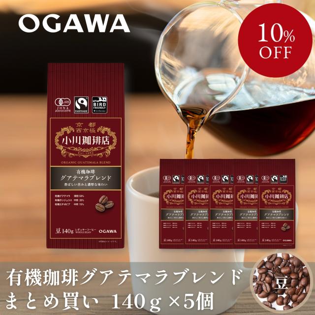 【まとめ買いでお得!】小川珈琲 有機珈琲 グアテマラブレンド(豆)140g ×5個 | SDGs エシカル 有機栽培 オーガニック 有機JAS認証 バードフレンドリー フェアトレード レギュラーコーヒー 豆 | 公式 京都 小川珈琲 送料無料