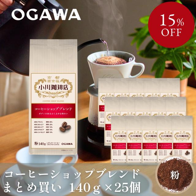 【まとめ買いでお得!】小川珈琲 コーヒーショップブレンド (粉)140g ×25個 | レギュラーコーヒー お試し コーヒーメーカー | 公式 京都 小川珈琲 送料無料