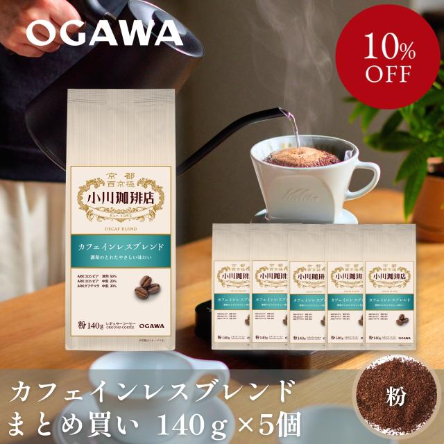 【まとめ買いでお得!】小川珈琲 小川珈琲店 カフェインレスブレンド (粉)140g ×5個 | レギュラーコーヒー 粉 デカフェ カフェインレス 水抽出法 | 公式 京都 小川珈琲 送料無料