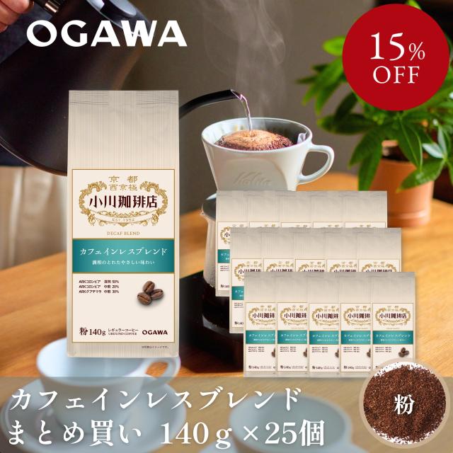 【まとめ買いでお得!】小川珈琲 小川珈琲店 カフェインレスブレンド (粉)140g ×25個 | レギュラーコーヒー 粉 デカフェ カフェインレス 水抽出法 | 公式 京都 小川珈琲 送料無料