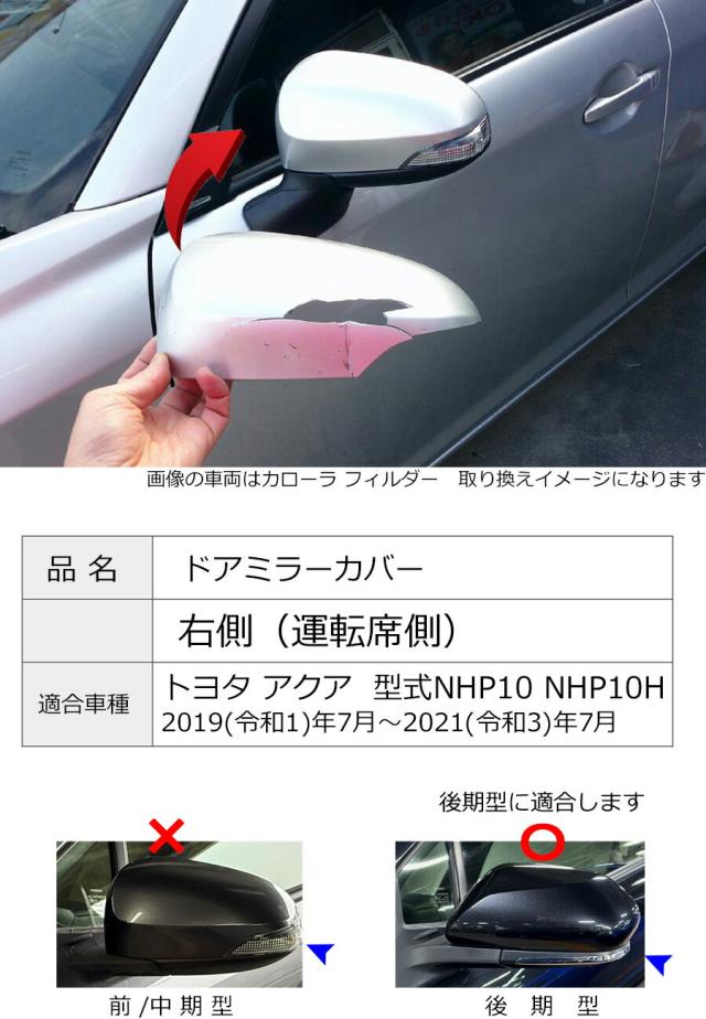ドアミラーカバー右 トヨタ アクア NHP10 後期用 右側(運転席側)カラーをお選びください 傷・割れ・はげた時にDIYで交換にチャレンジ TAR20