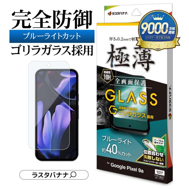 【送料無料】Google Pixel 9a ガラスフィルム 全面保護 ブルーライトカット 高光沢 透明 0.2mm 薄型 極薄 高感度 ゴリラガラス採用 指紋認証対応 簡単貼り付けガイド 硬度10H グーグルピクセル 保護フィルム GGE4691P9A ラスタバナナ