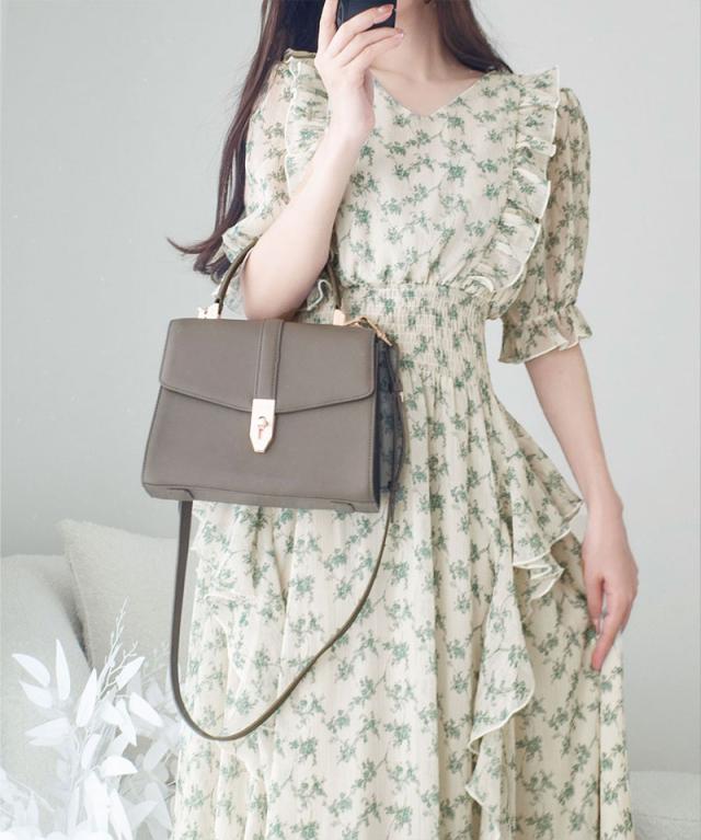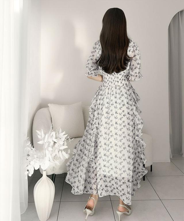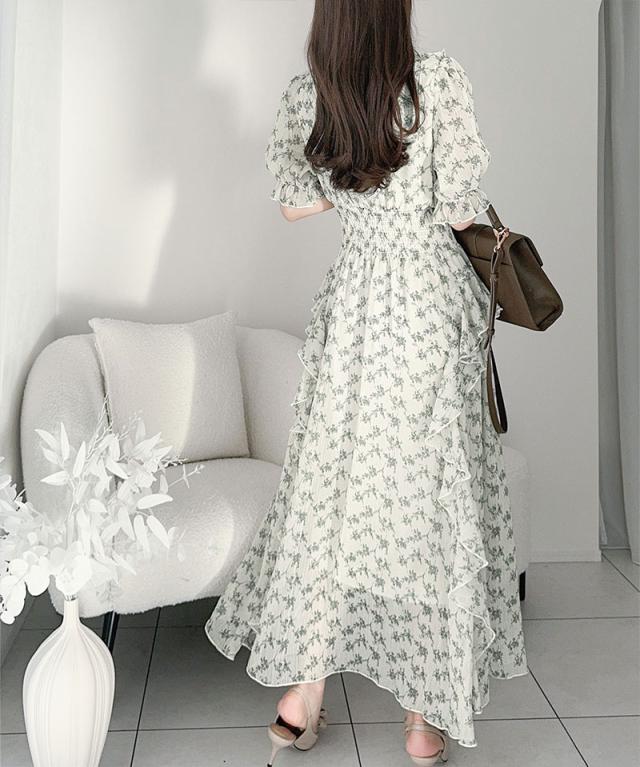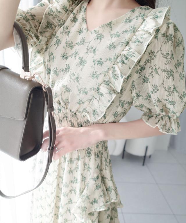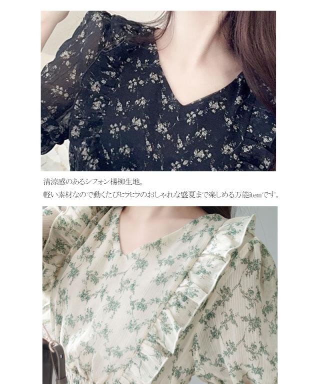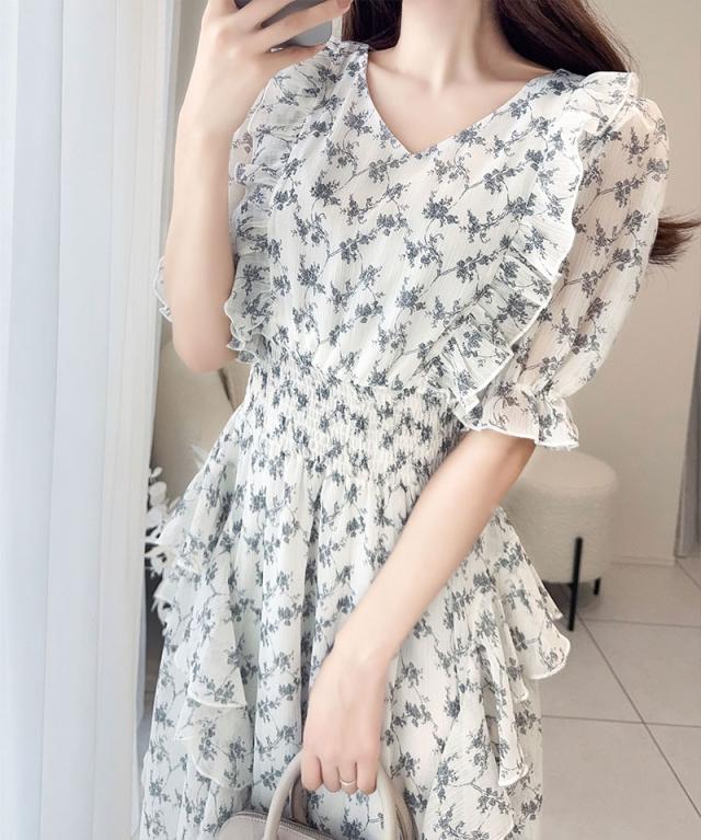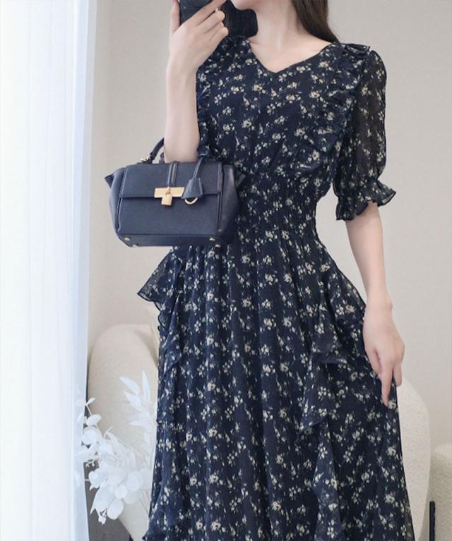 クラシカルエルフ冬新作 mily bilet ワンピース レディース 小花柄 サイド フリル V ネック シアー 素材 ワンピース きれいめ ウエスト シャーリング スタイルアップ 大きいサイズ 2025ss mi1139063