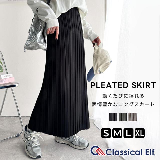 クラシカルエルフ冬新作 ボトムス スカート レディース プリーツ ロング ナロー SK ハリ感 カットジョーゼット 素材 美 シルエット 着回し ロングシーズン 大きいサイズ 2025ss ce1070157