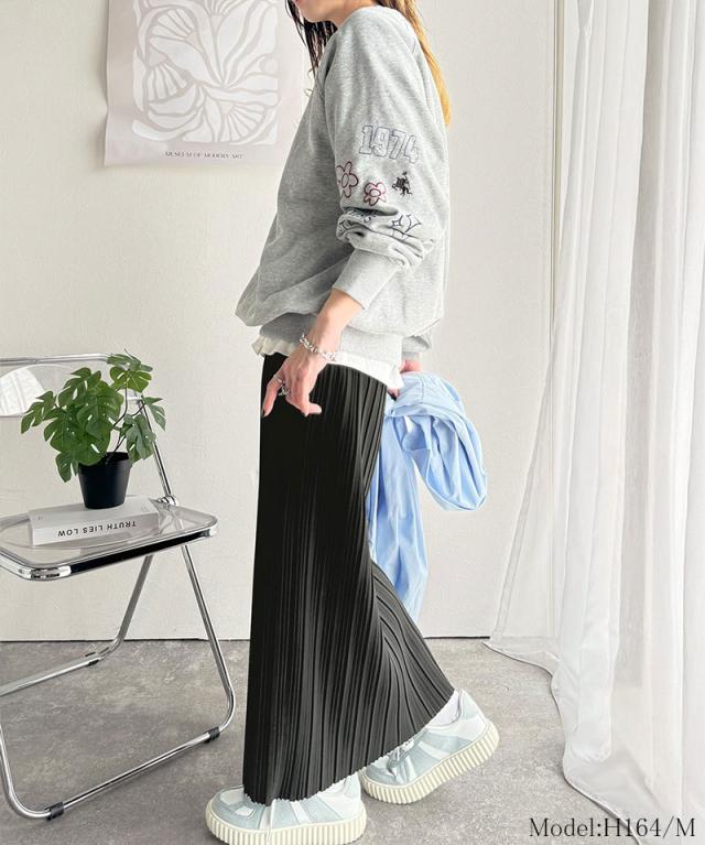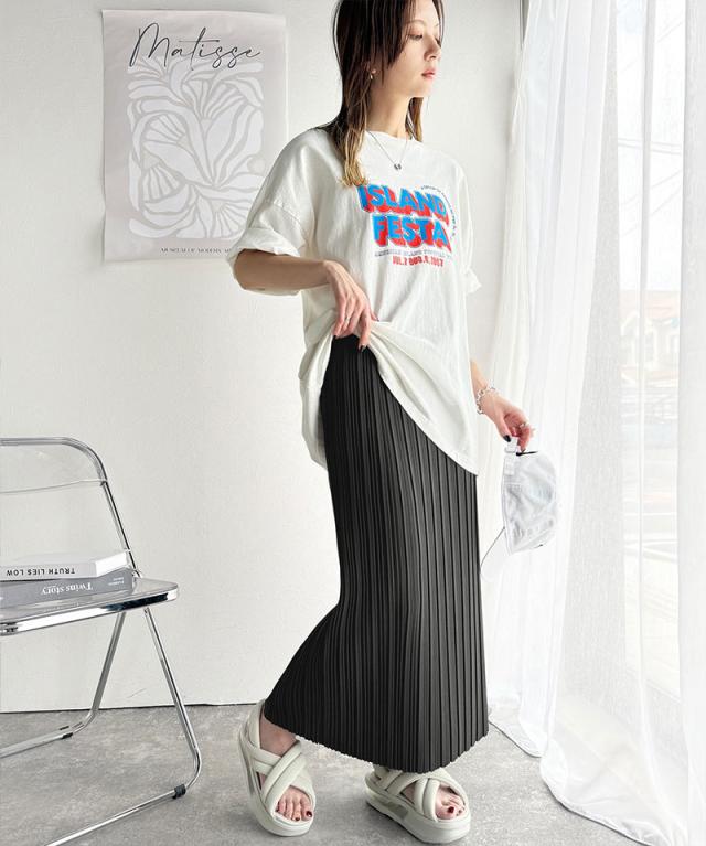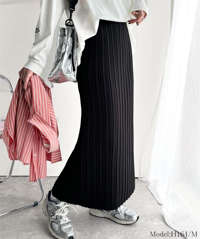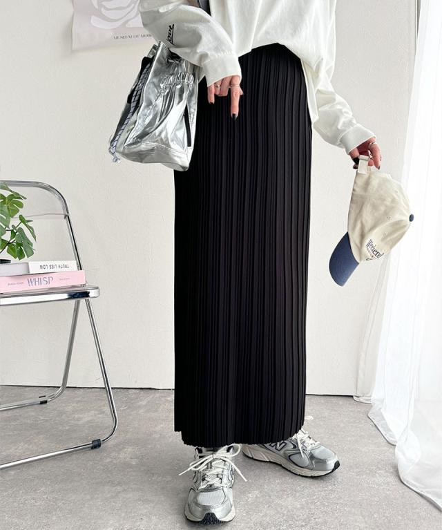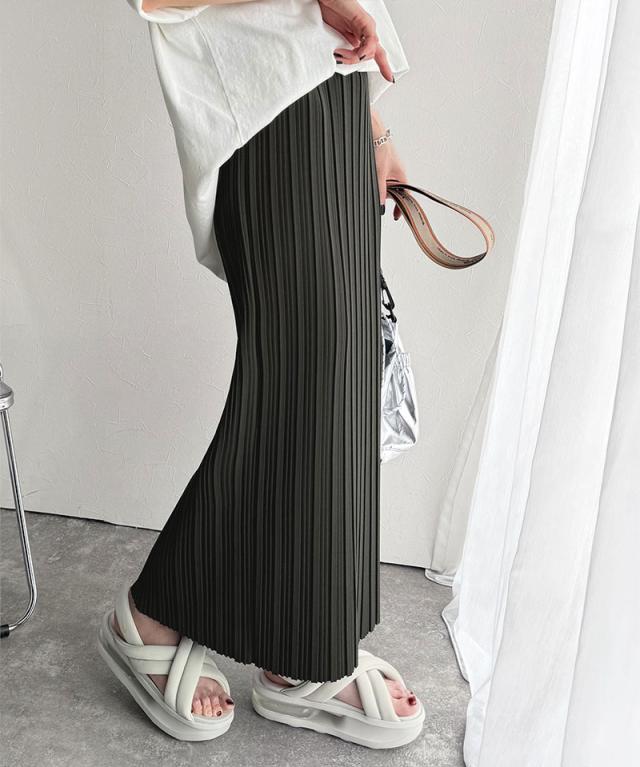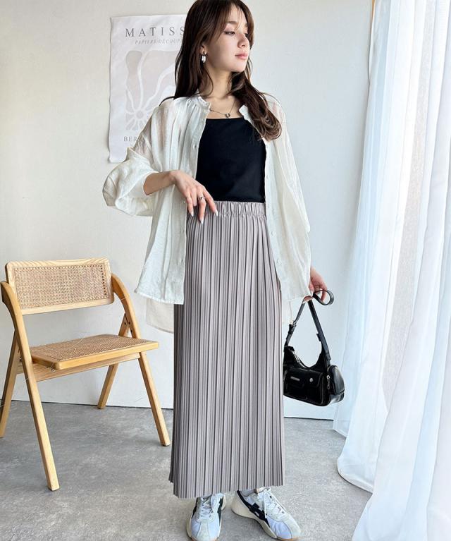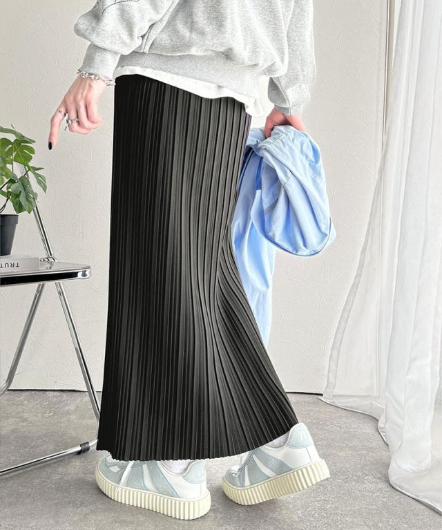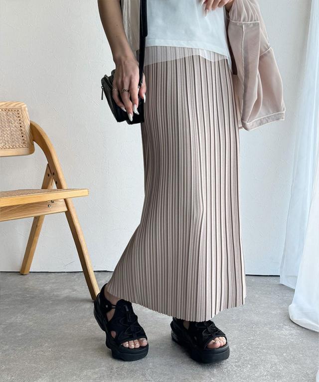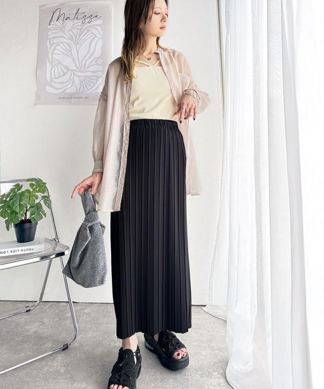 動くたびに揺れるプリーツが、表情豊かなロングスカート。