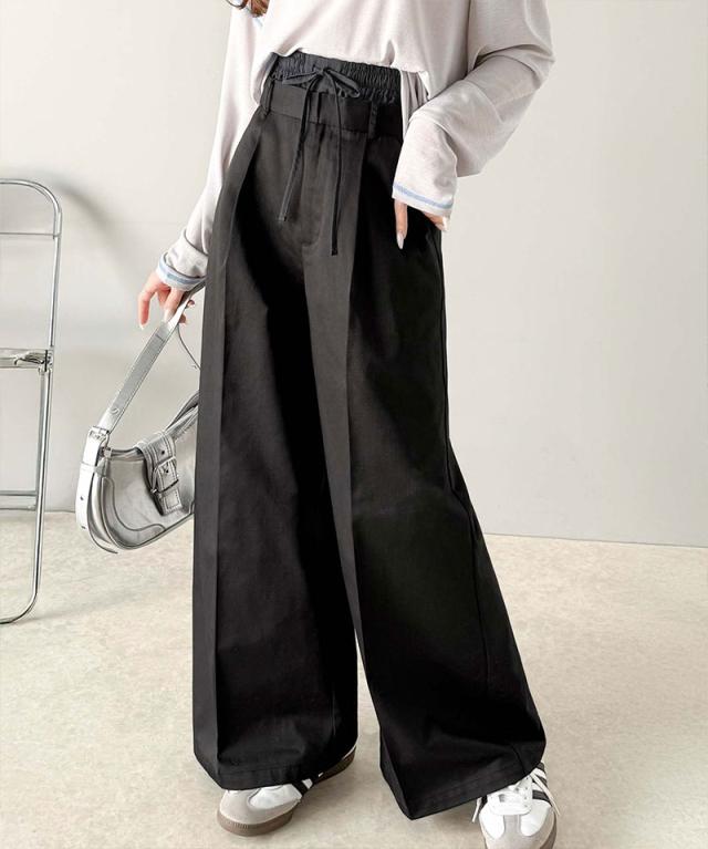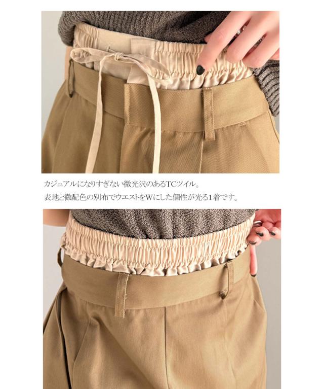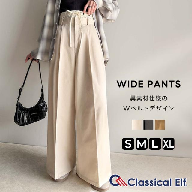 クラシカルエルフ冬新作 ボトムス パンツ レディース W ベルト 異素材 ドッキング スラックス ワイドパンツハイウエスト センタープレス ワイドシルエット 大きいサイズ 2025ss ce0940219