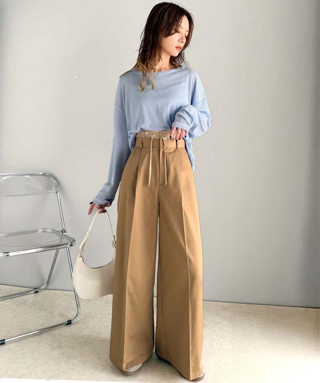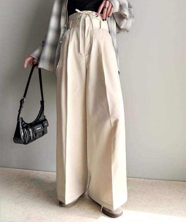 ロングシーズン対応の個性派ハイウエストワイドパンツ。