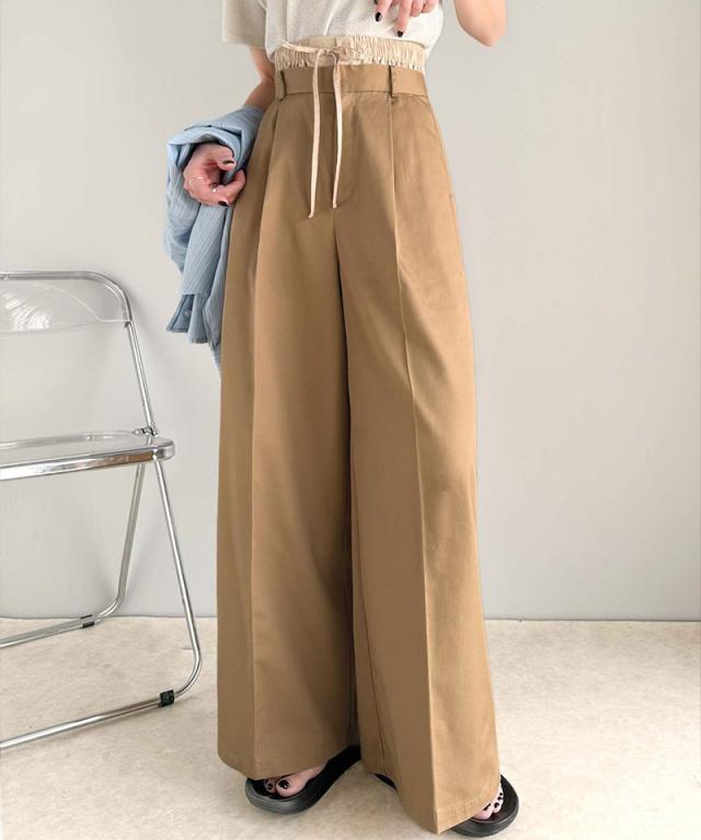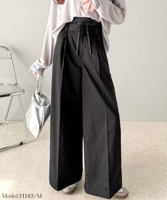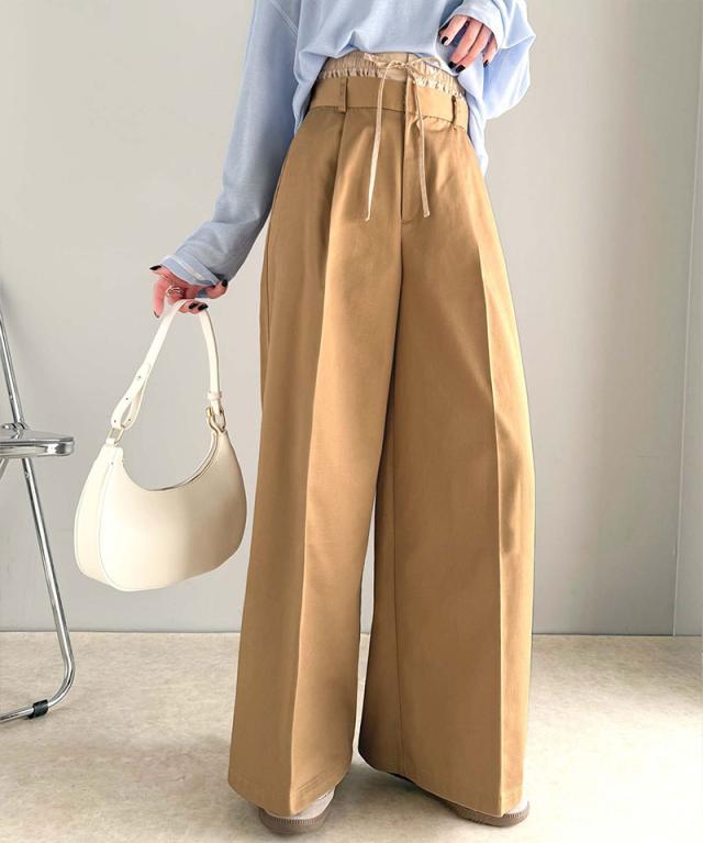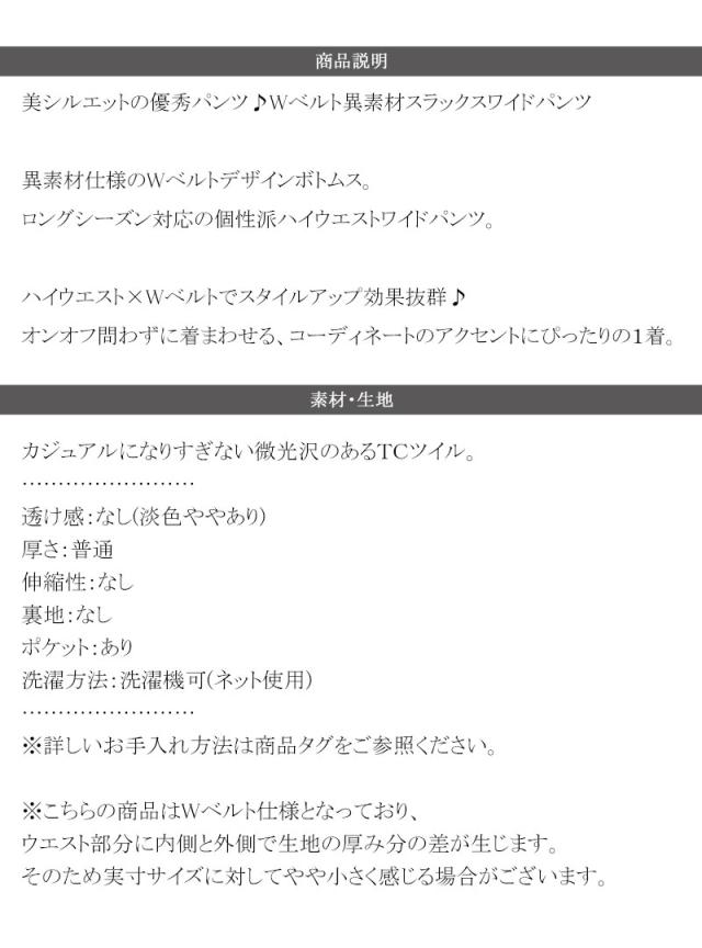 ★美しいシルエットの優秀パンツ♪Wベルト異素材スラックスワイドパンツ★