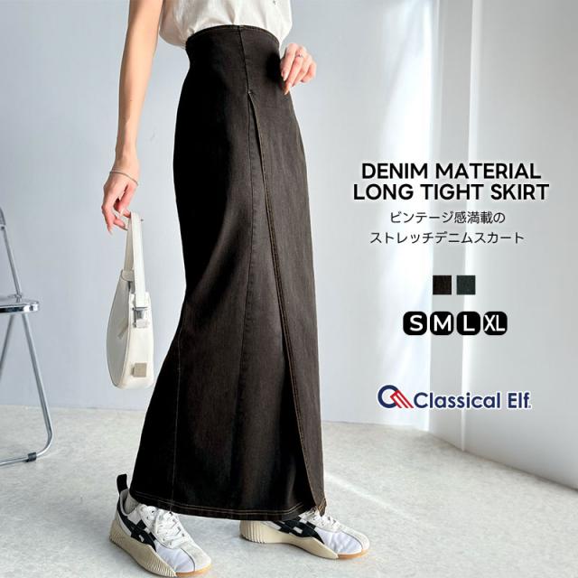 クラシカルエルフ春新作 ボトムス スカート レディース デニムスカート ロングタイトスカート ヴィンテージライク ストレッチ素材 カジュアル タイトシルエット ハイウエスト 大きいサイズ 2026ss ce0940221