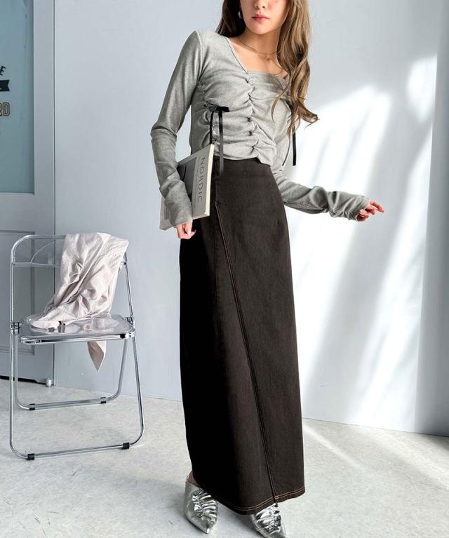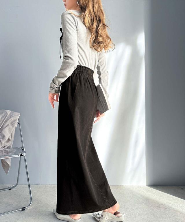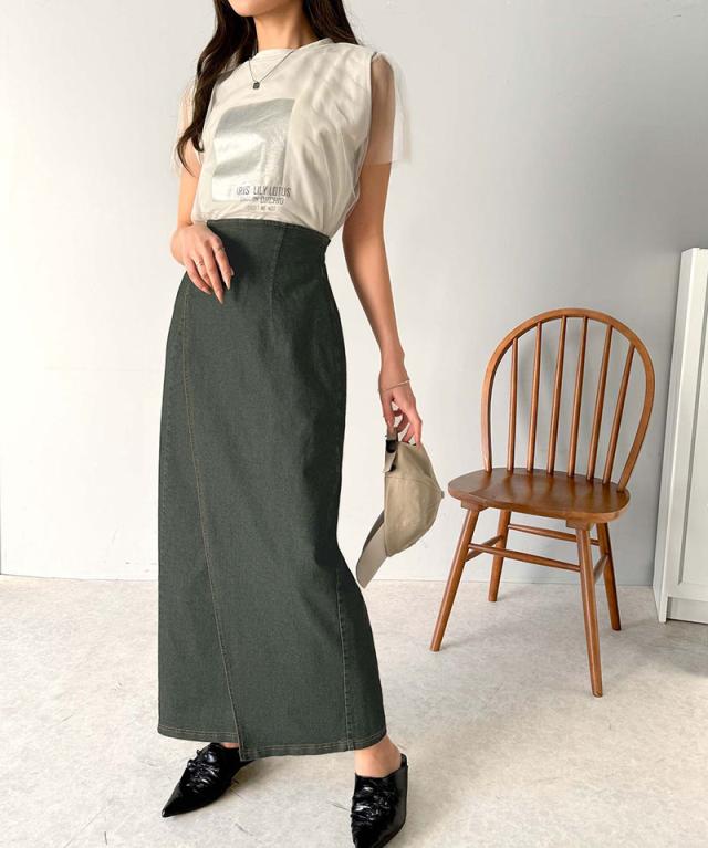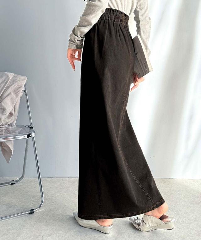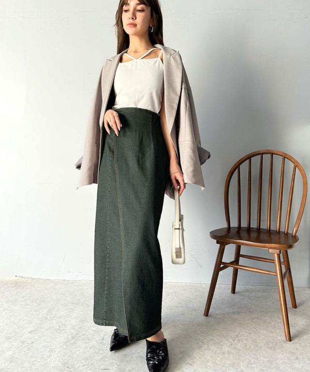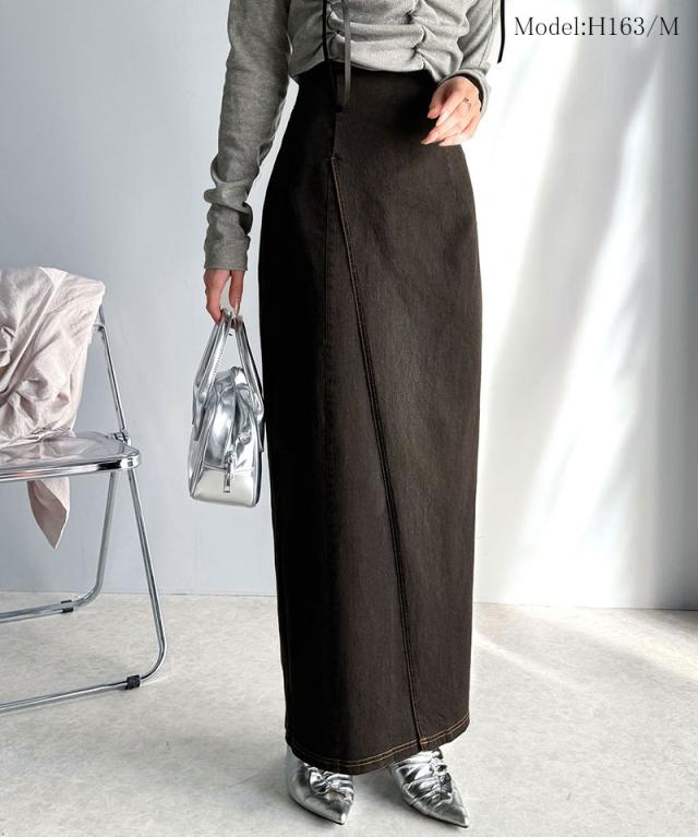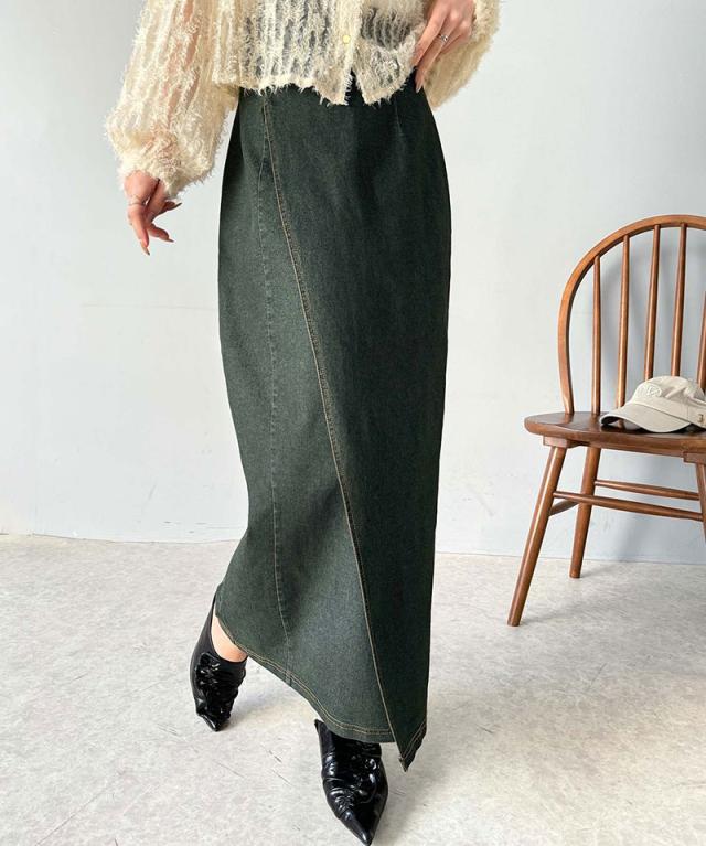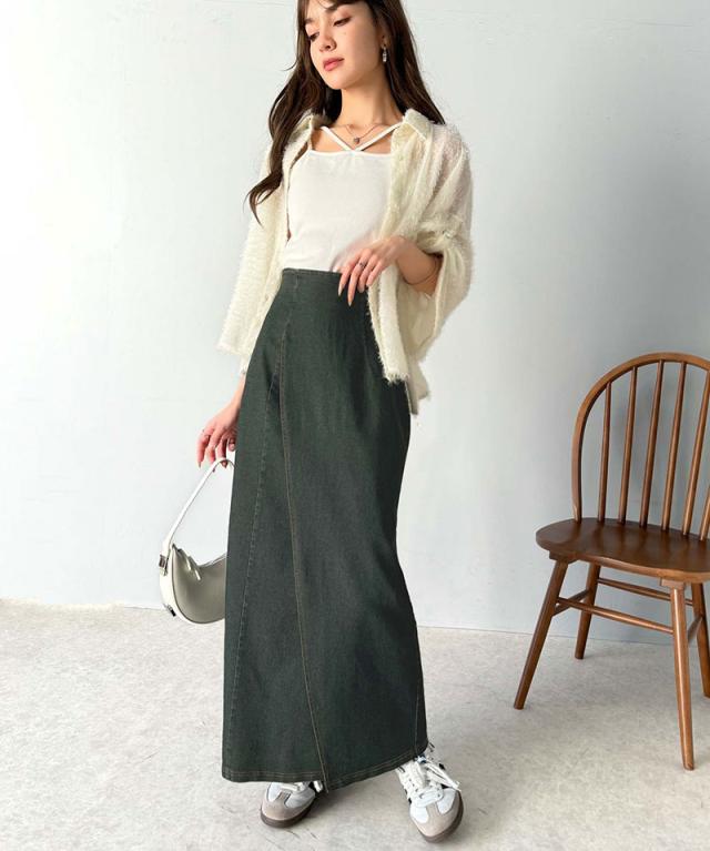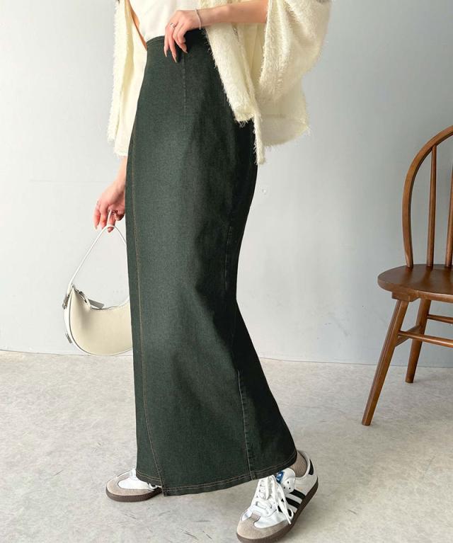 ★ヴィンテージライクなデニムスタイルに。ストレッチデニム素材ロングタイトスカート★