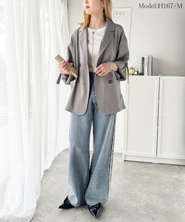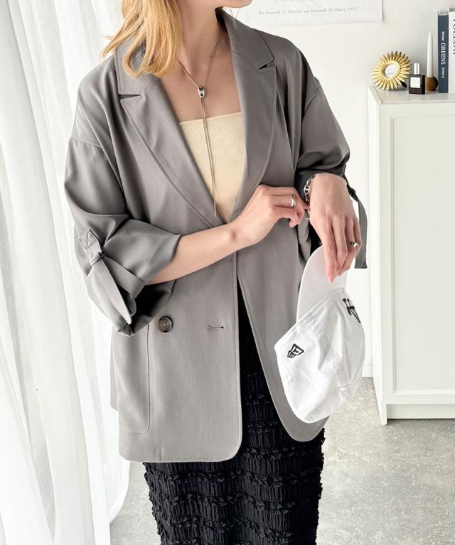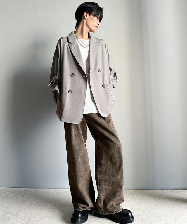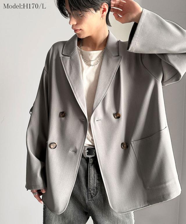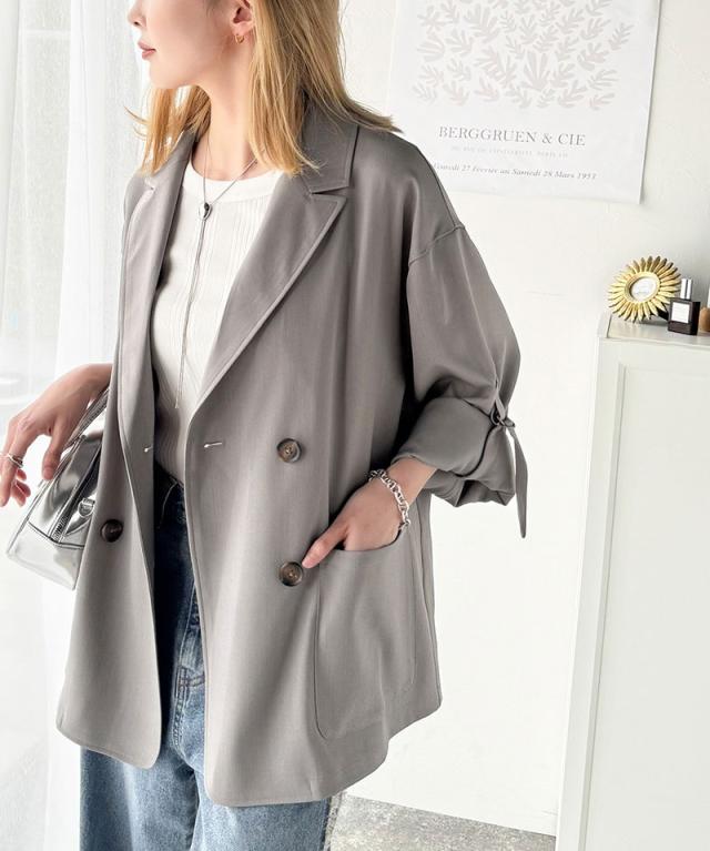 ★綺麗な落ち感。オーバーサイズ袖ロールアップドレープダブルジャケット★