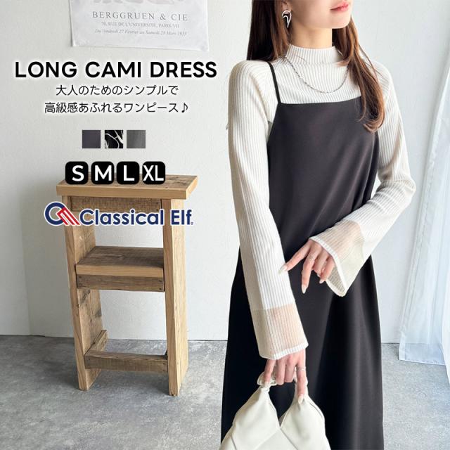 クラシカルエルフ冬新作 ワンピース レディース ロングキャミ 大人 ワンピ シンプル 肩紐調節可能 ダーツ オールシーズン スタイリッシュ 丈長め カジュアル きれいめ デート 大きいサイズ 2025ss ce1240065