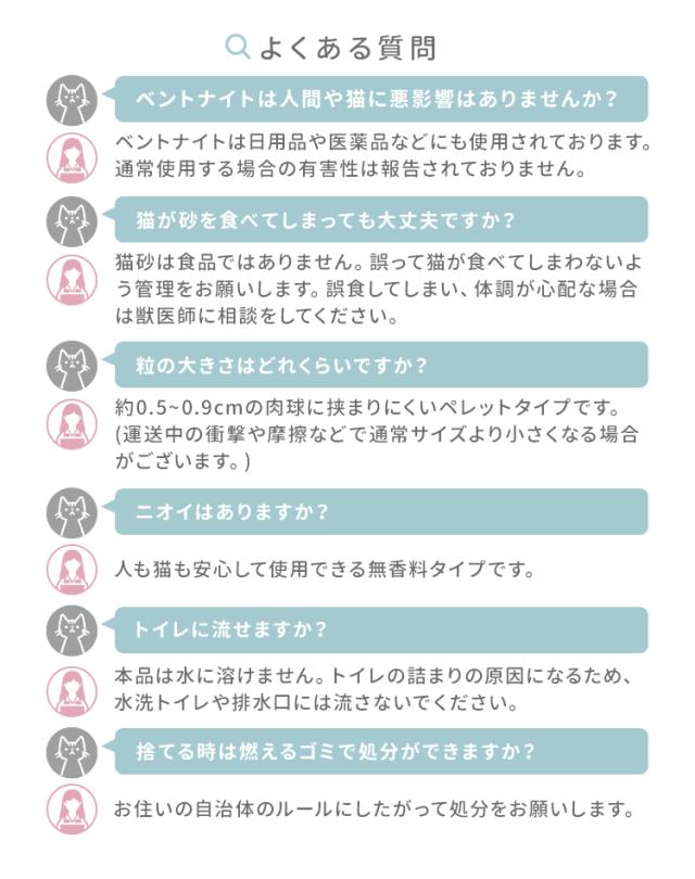 吸水性、膨潤性に優れた100%ナトリウムベントナイトを使用し、人も猫も安心安全で綺麗なトイレを保ちます。